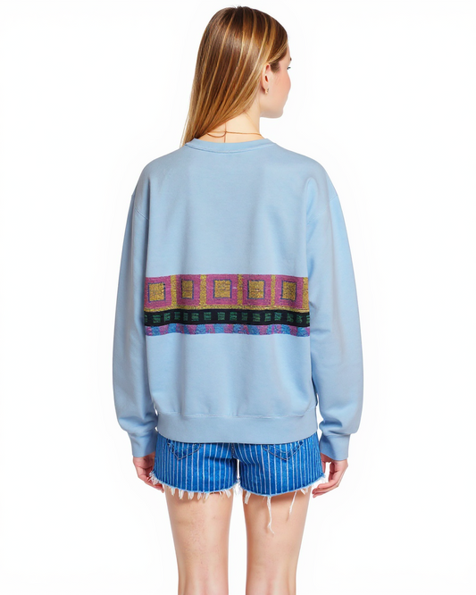"Absolutely love this one-of-a-kind sweatshirt. I first saw these sweatshirts 10 months ago and could. not. stop. thinking. about. them. From the care and attention during the selection process to the packaging. This sweatshirt is my new favorite clothing item."
