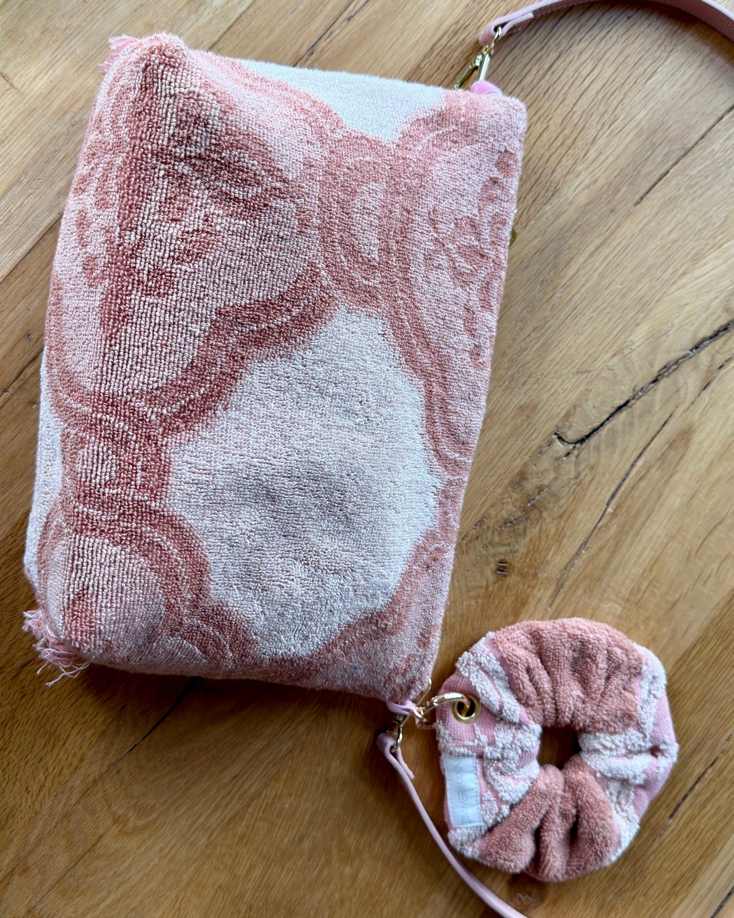 - Detachable scrunchie wristlet strap