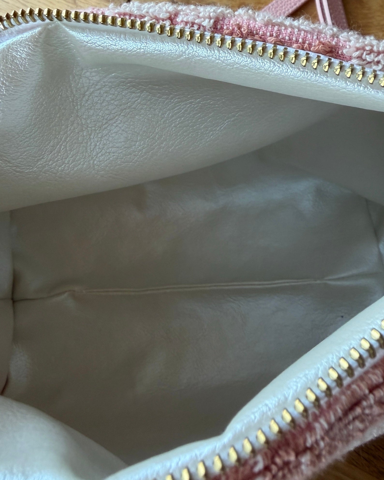 - Waterproof utility vegan leather lining (pearlescent off-cream)
