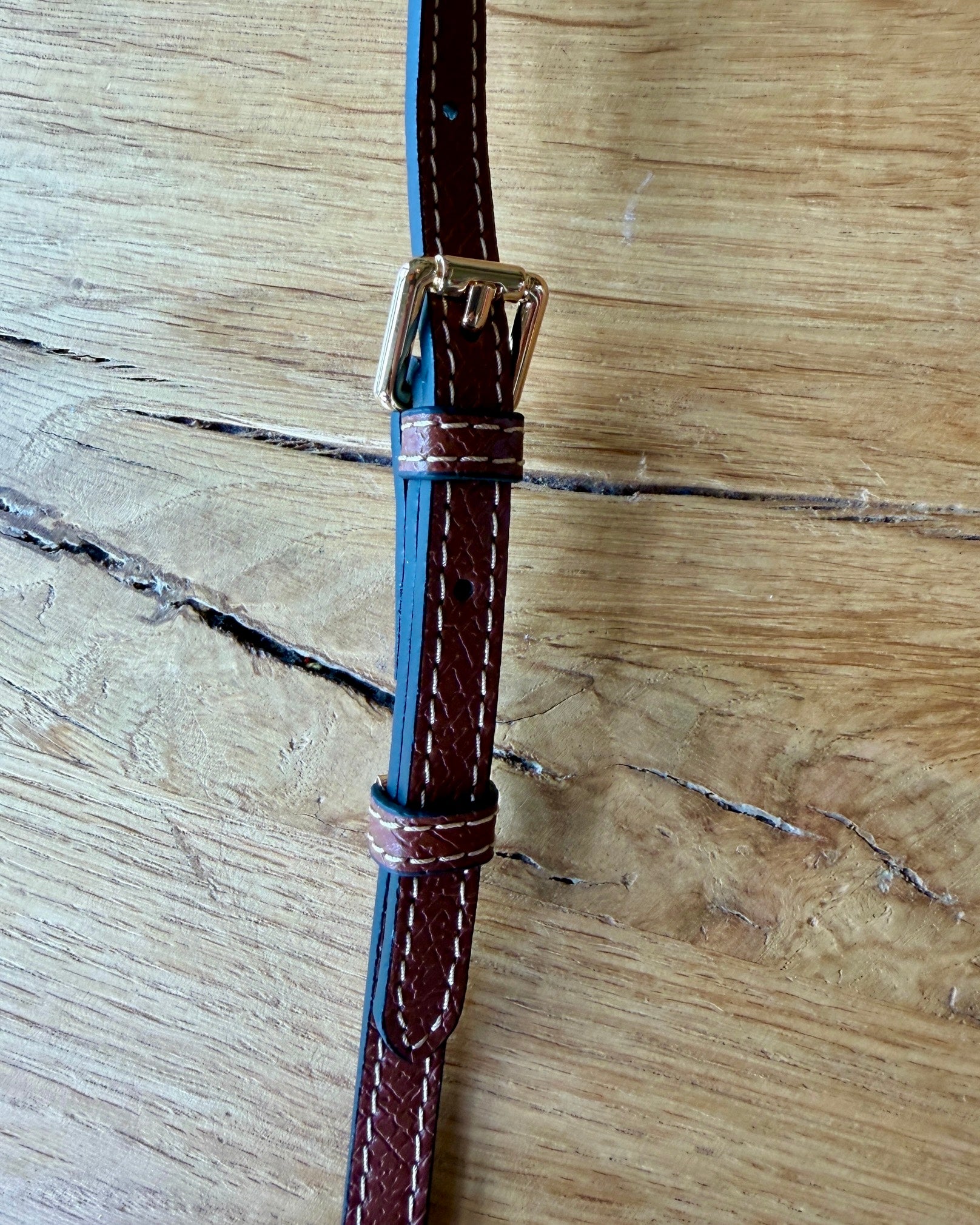 - Adjustable leather crossbody strap with gold hardware